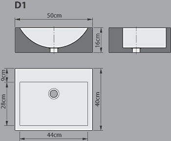 | Diese Waschbecken erhalten Sie in folgende Maßen ohne Bohrung für den Wasserhahn: