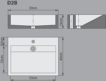 | Diese Waschbecken erhalten Sie in folgende Maßen ohne Bohrung für den Wasserhahn: